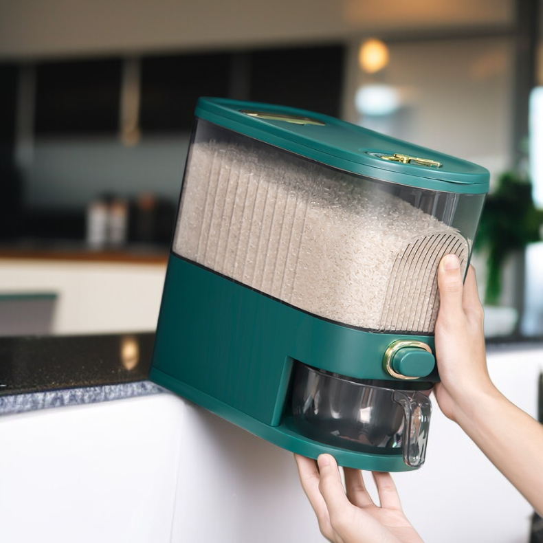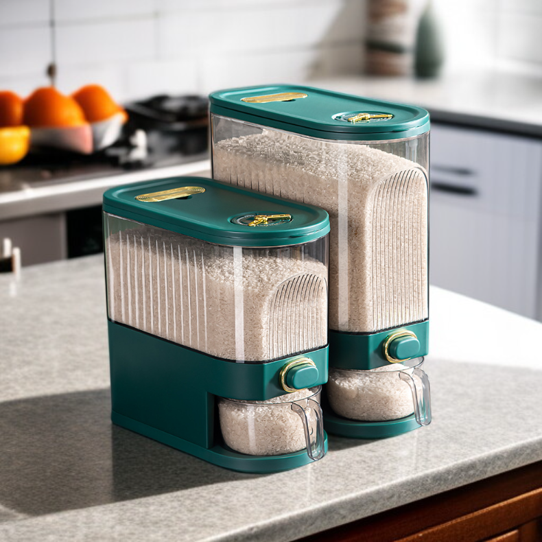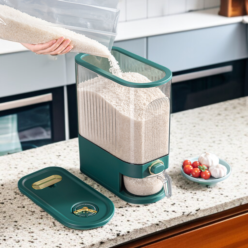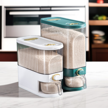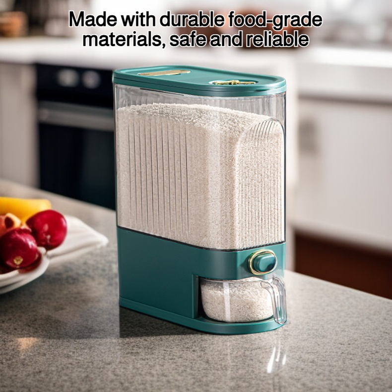 ● Large-capacity bin holds plenty of rice or grains, making it ideal for family use while its clear design lets you easily monitor remaining quantities.