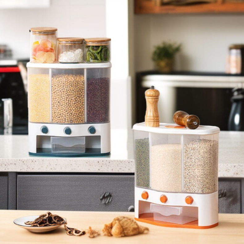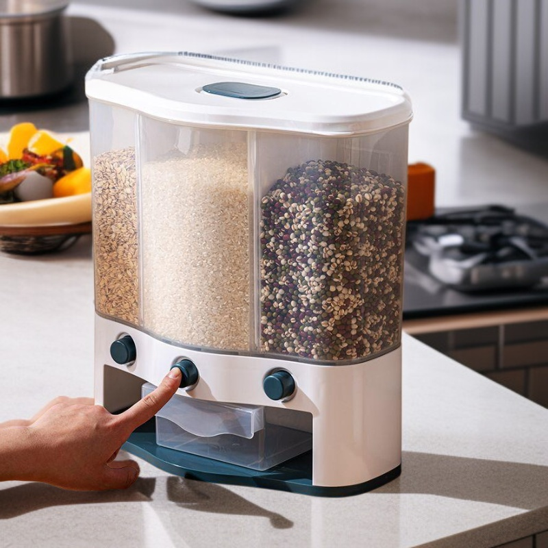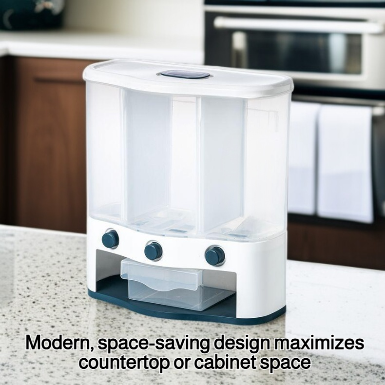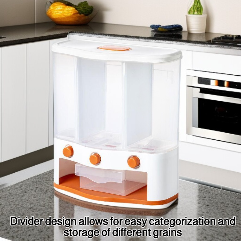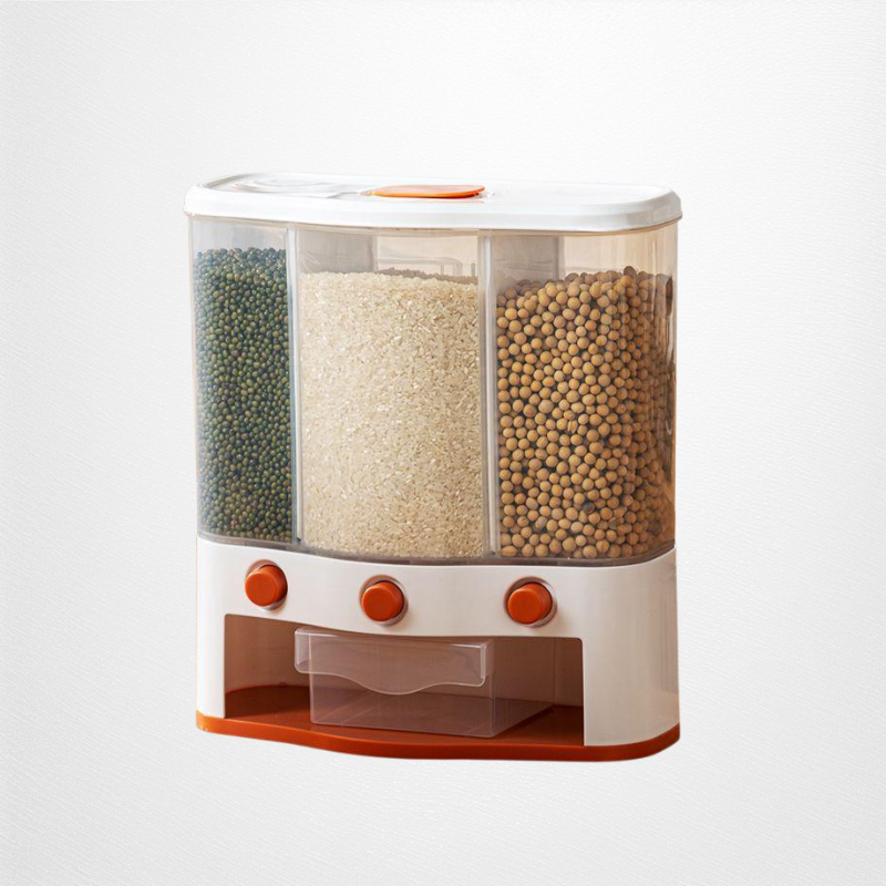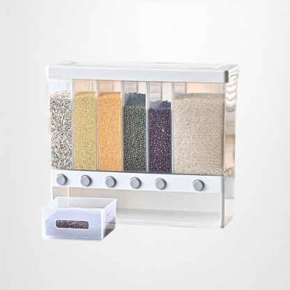 ● Effortlessly store and organize multiple types of rice and grains with this multi-compartment, press-type container—keeping your kitchen neat and your ingredients fresh.