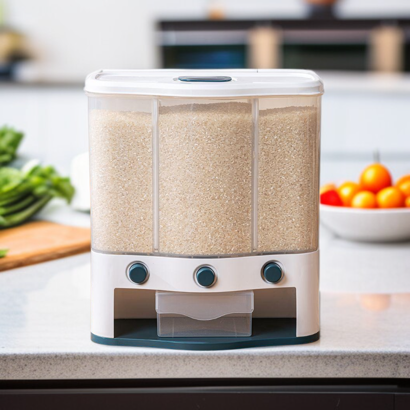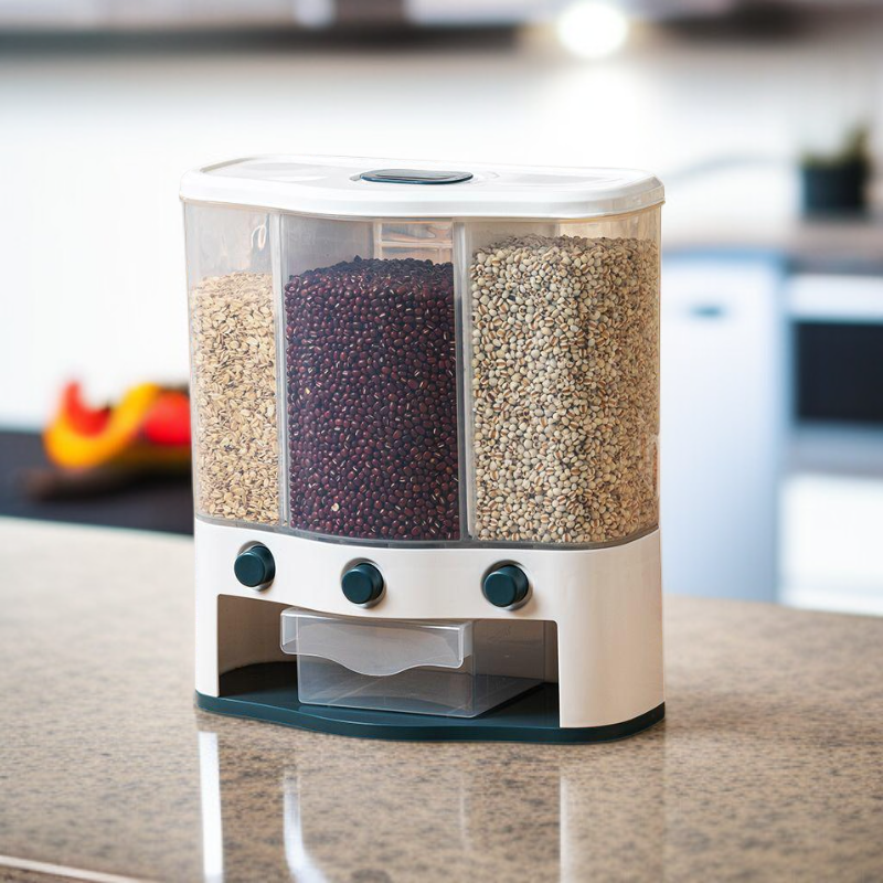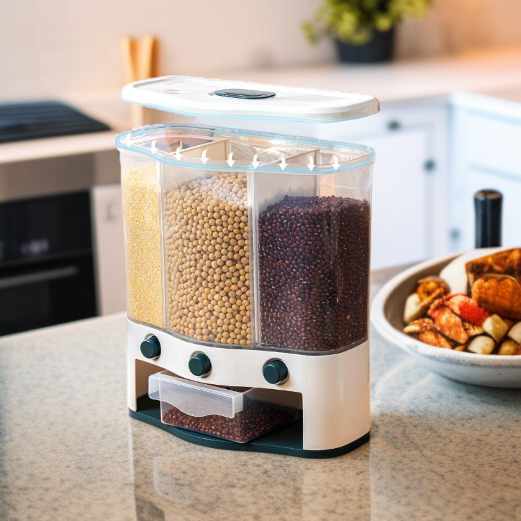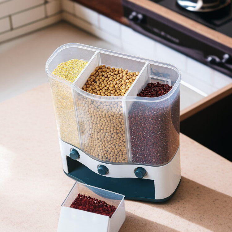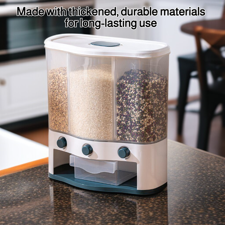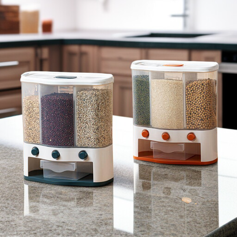 ● Effortlessly store and organize multiple types of rice and grains with this multi-compartment, press-type container—keeping your kitchen neat and your ingredients fresh.