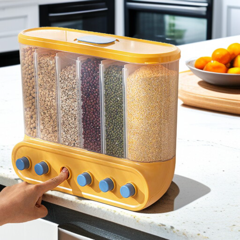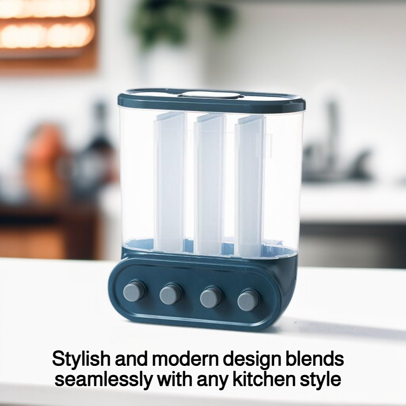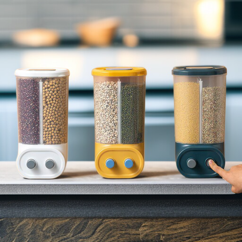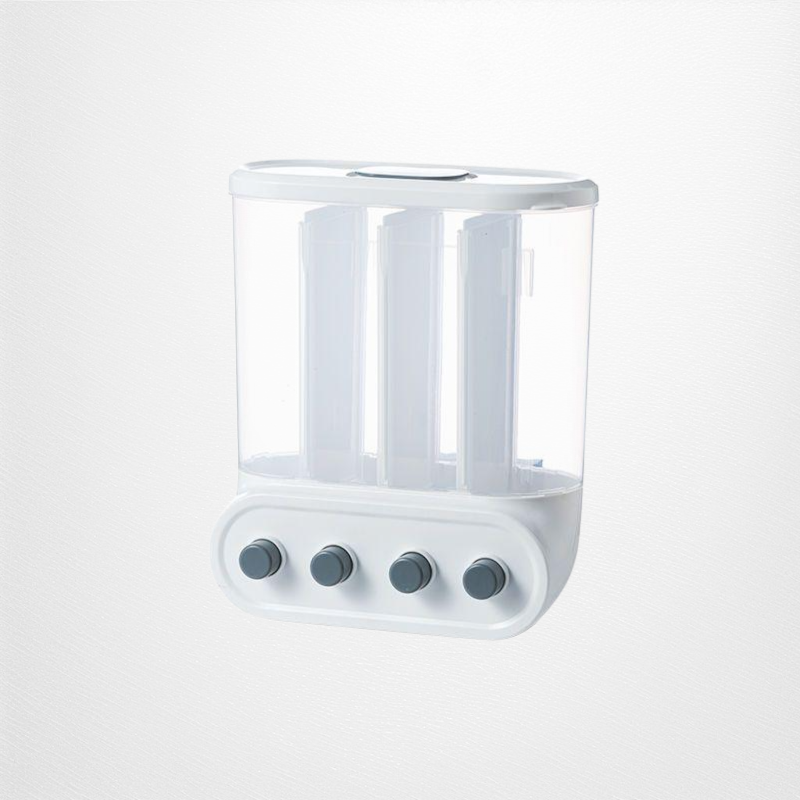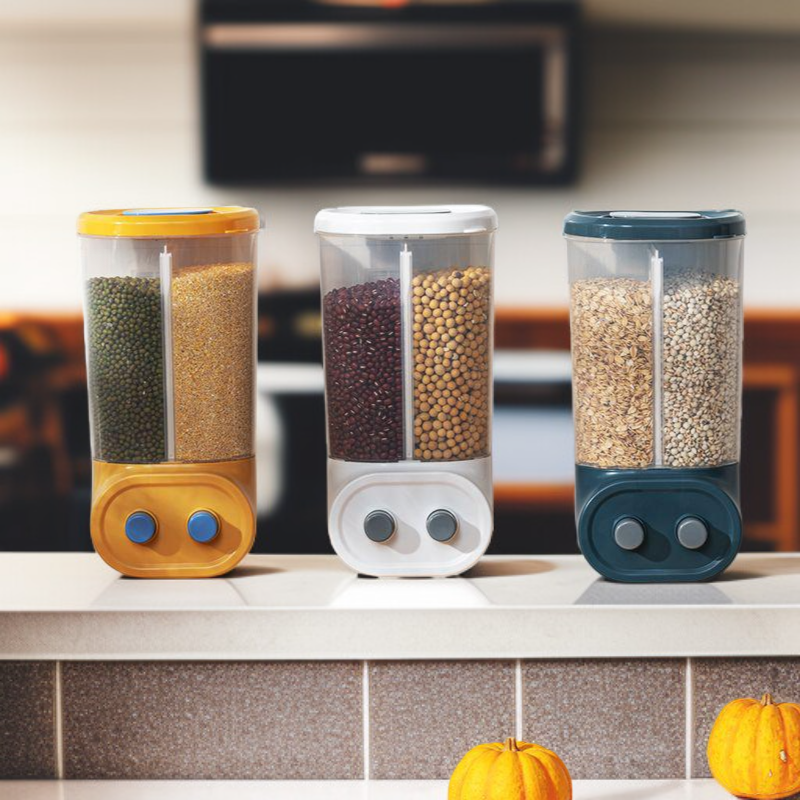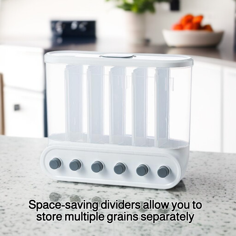 Multi-functional Kitchen Wall-mounted Partitioned Grain Storage Bin (No Drill) – Press-to-Seal Cereal Dispenser