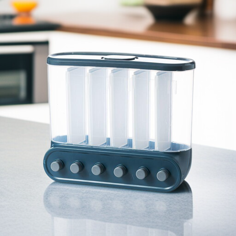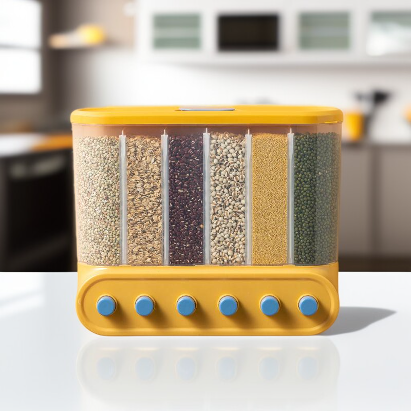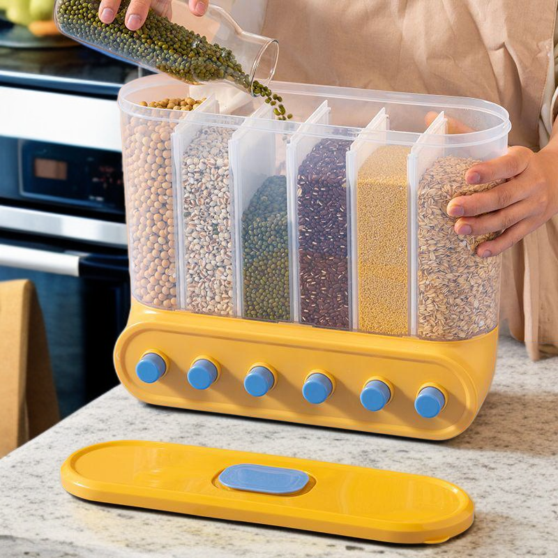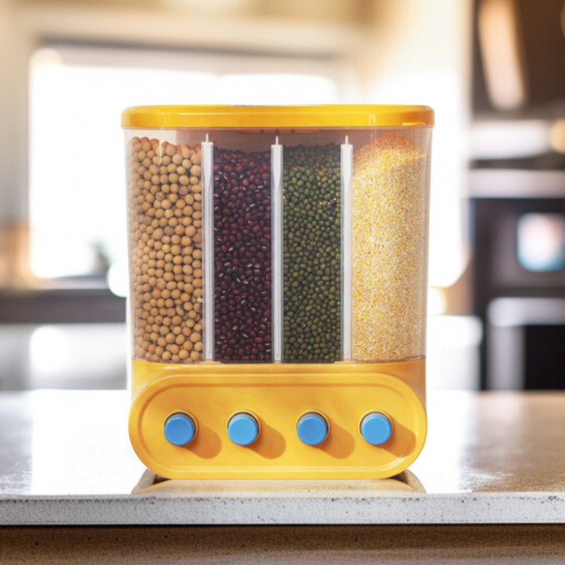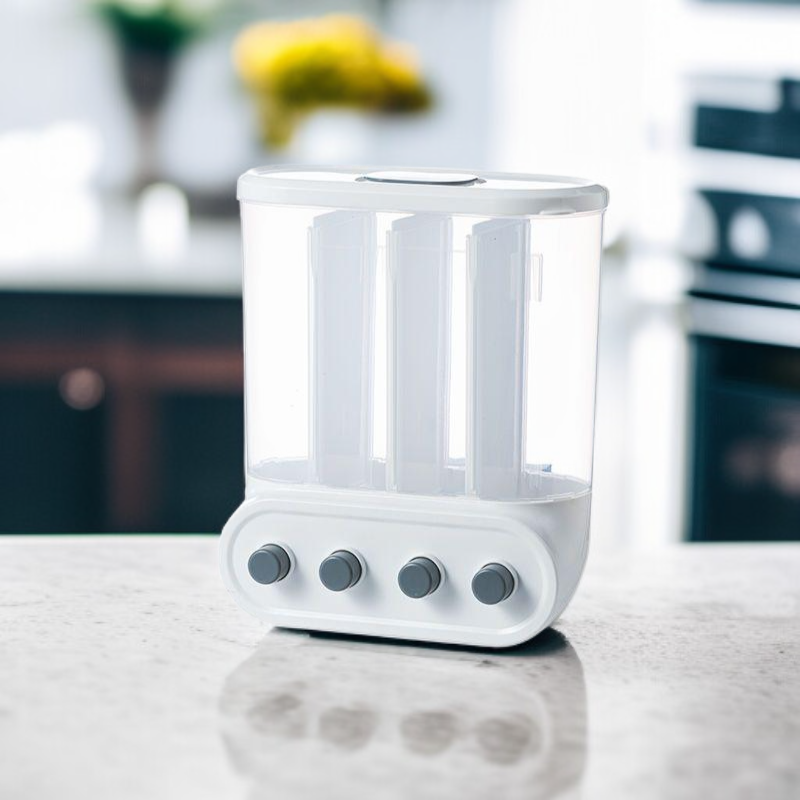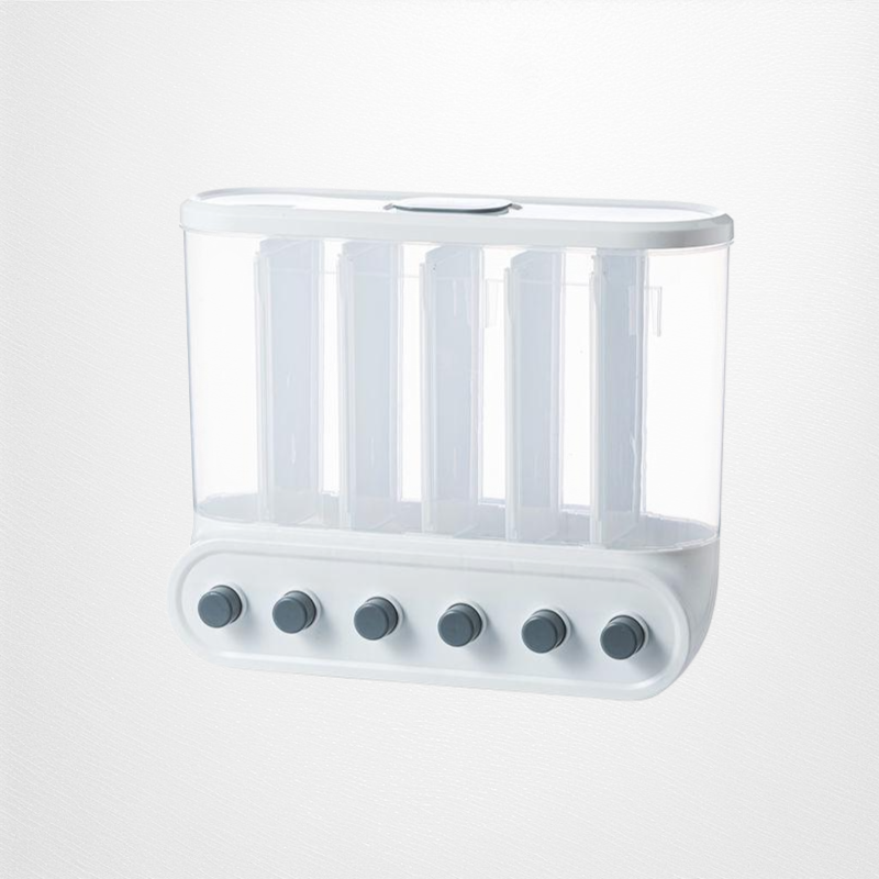 Multi-functional Kitchen Wall-mounted Partitioned Grain Storage Bin (No Drill) – Press-to-Seal Cereal Dispenser