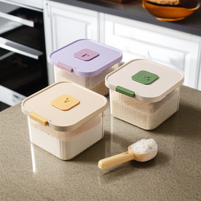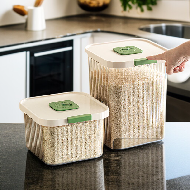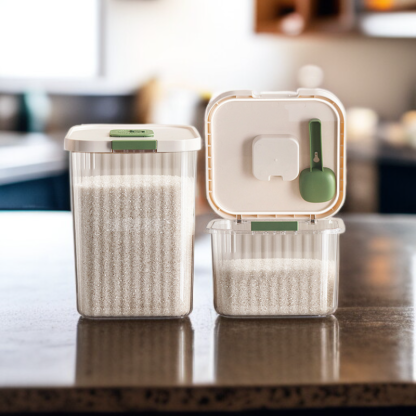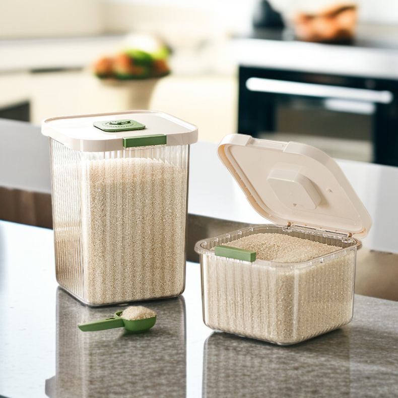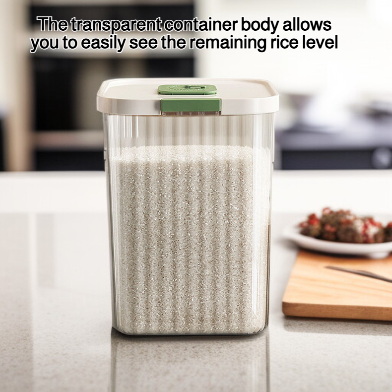 ● Large capacity design allows you to store bulk quantities of rice, reducing the need for frequent refills and saving kitchen space.